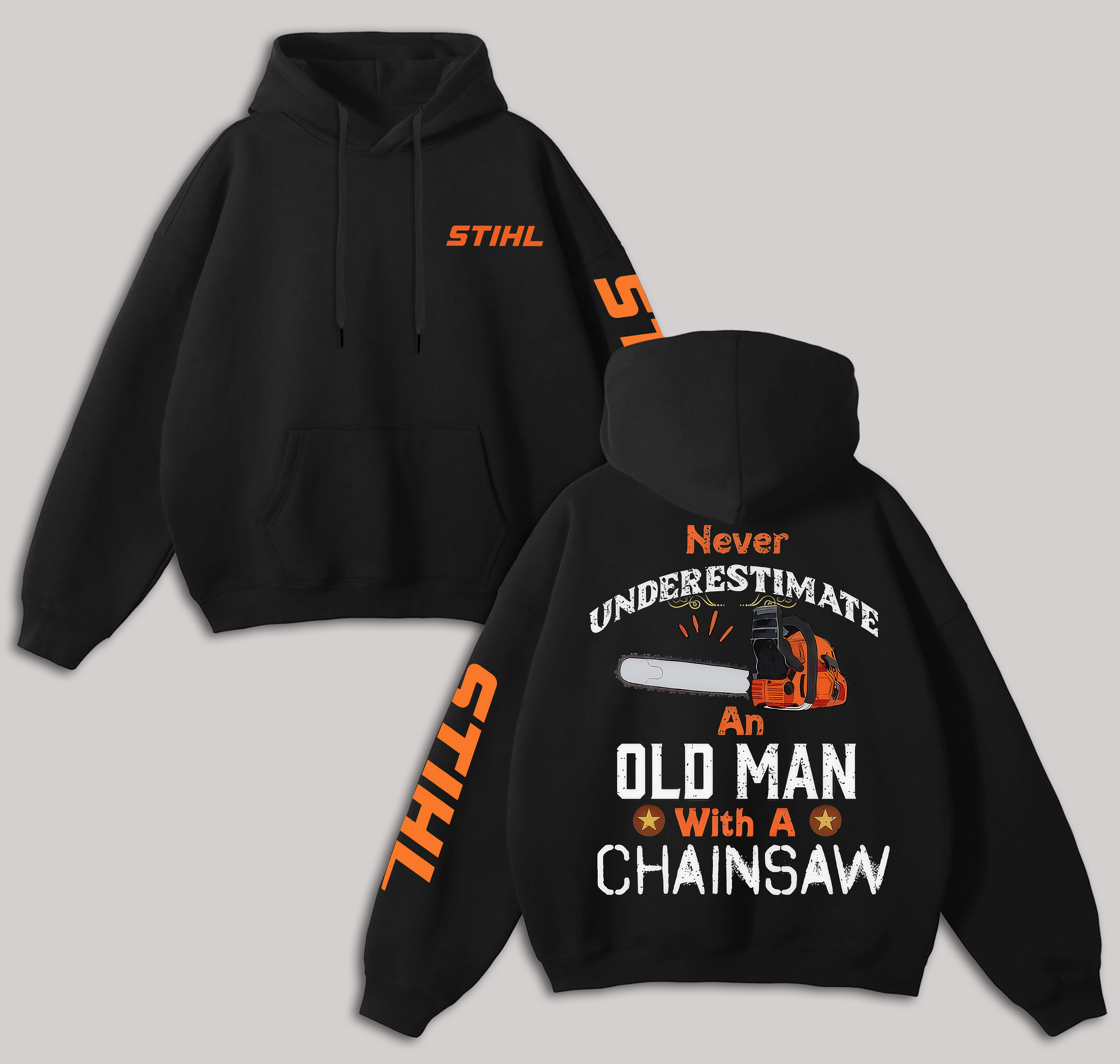 Stihl Never Underestimate An Old Man With A Chainsaw Printed Fleece-lined Unisex Hoodie