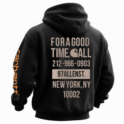 Carharttt For A Good Time, Call 212-966-0903 Printed Fleece-lined Unisex Hoodie