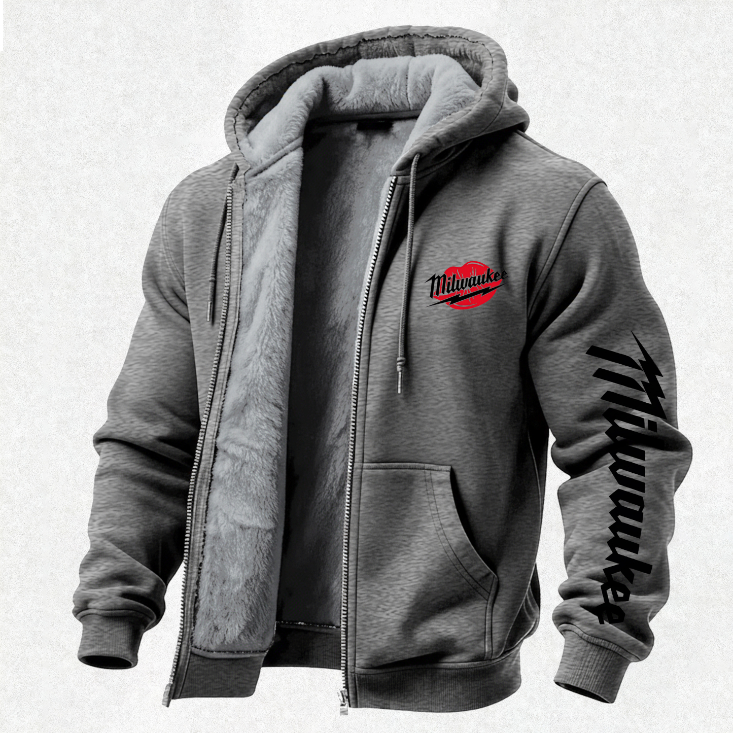 Milwaukee Printed Zippered Hooded Fleece Cardigan