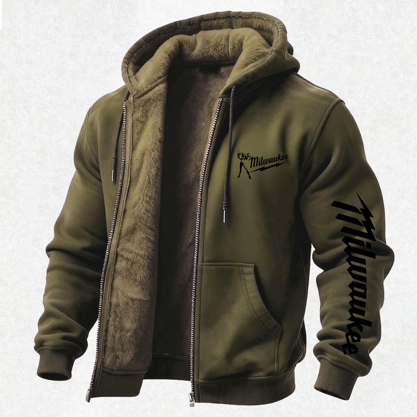 Milwaukee Printed Zippered Hooded Fleece Cardigan