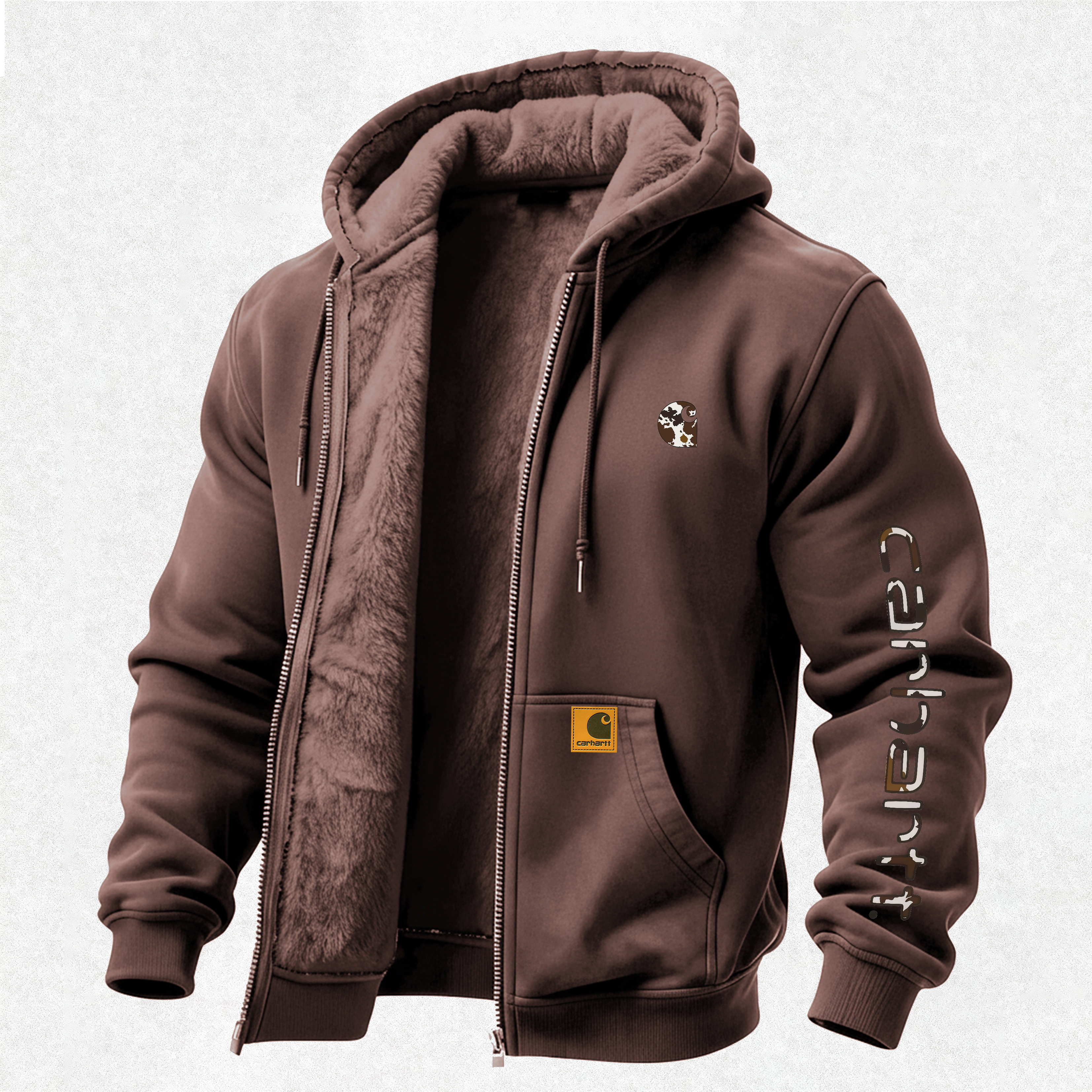 Vintage Carharttt Printed Zippered Hooded Fleece Cardigan